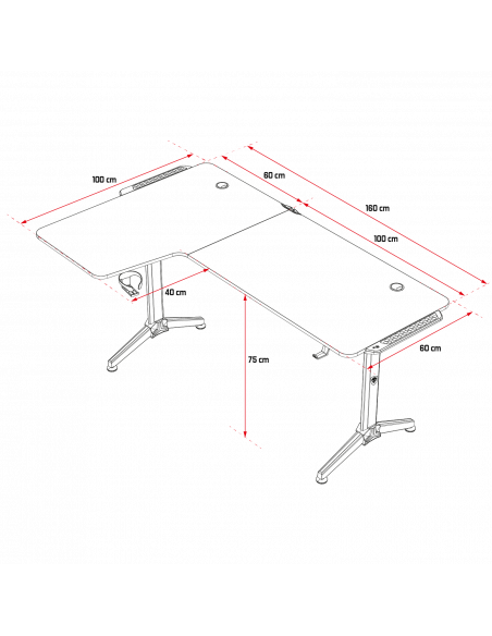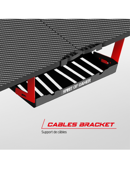 ALL IN ONE The office is equipped with many accessories.A support to have his Headset gamer at hand.A cup holder to never overthrow his drink in case of rabies quit!And for a still clean space, the tray integrates 2 round cable passes and under one basket to also store your cables and multiprises...