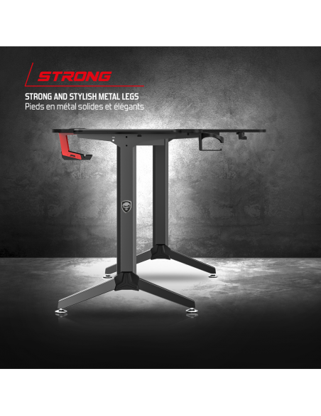 ALL IN ONE The office is equipped with many accessories.A support to have his Headset gamer at hand.A cup holder to never overthrow his drink in case of rabies quit!And for a still clean space, the tray integrates 2 round cable passes and under one basket to also store your cables and multiprises...